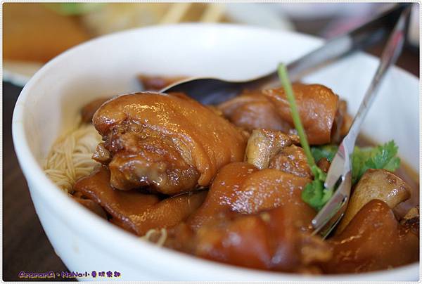 上菜四。『菸樓豬腳』因為有壽星,所以老闆特別幫我們加了麵線祝壽
